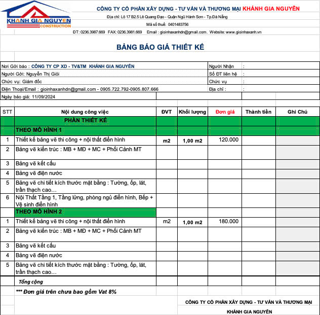 Báo giá thiết kế
